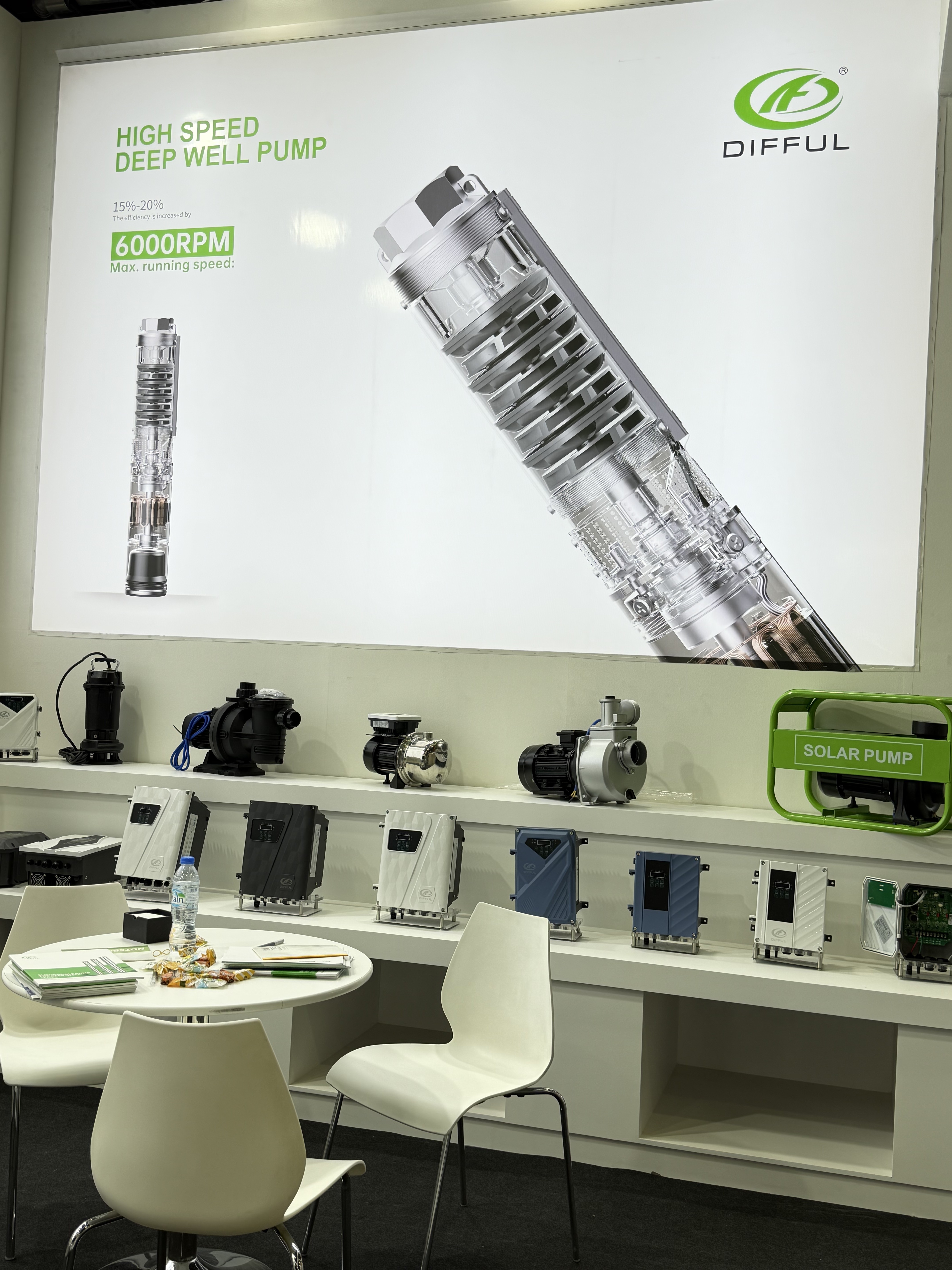To meet the stringent requirements of large-scale infrastructure construction in the region,DIFFUL showcased its time-tested DCPM, DQD, and DFSU series solar surface pumps. These products earned deep recognition from numerous engineering contractors and municipal procurement units due to their exceptional reliability, powerful drainage capabilities, and extremely low failure rates, further solidifying the company's brand strength in the traditional infrastructure sector.