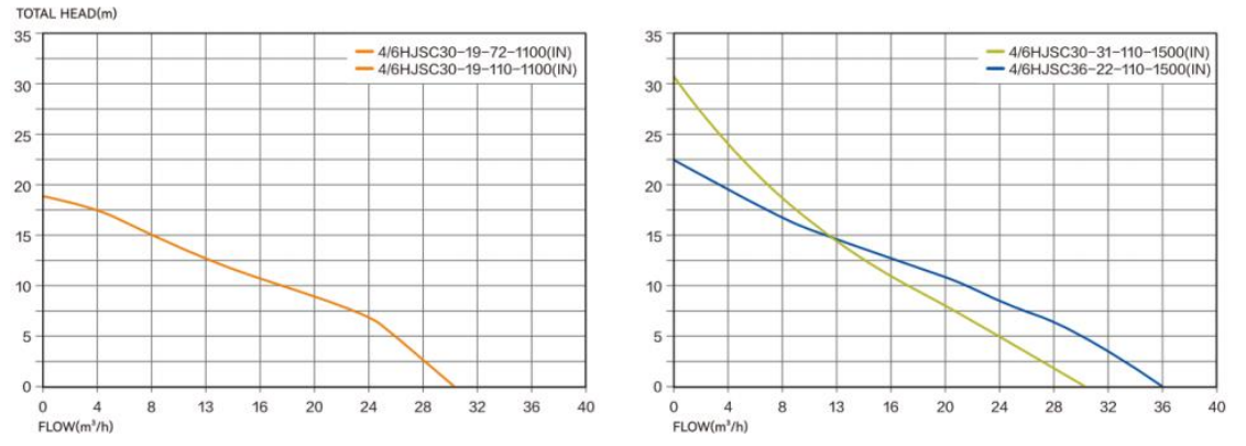 | 4/6HJSC30-19-72-1100 | -IN | 72V | 90V-120V | 1100W | 30m³/h | 19m | 3" | 2m | <170V | <155V |