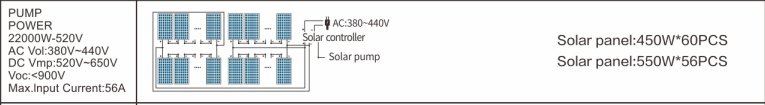 6HJPC88-225-380/520-30000-A/D | AC380/DC520V | 520V-650V | 30000W | 88m³/h | 225m | 3" | 2.5m | <800V | ≥1.3*PUMP POWER |