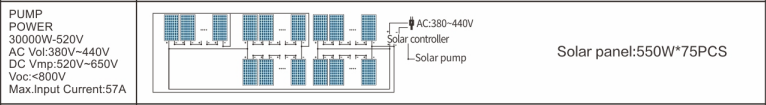 6HJPC68-330-380/520-30000-A/D | AC380/DC520V | 520V-650V | 30000W | 68m³/h | 330m | 3" | 2.5m | <800V | ≥1.3*PUMP POWER |