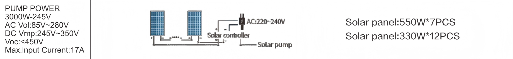 HJCPM85-28-300-3000-A/D(HV) | 85V-280V(/) | 300V-350V | 3000W | 85m³/h | 28m | 5" | 0.6m | <450V | <430V |