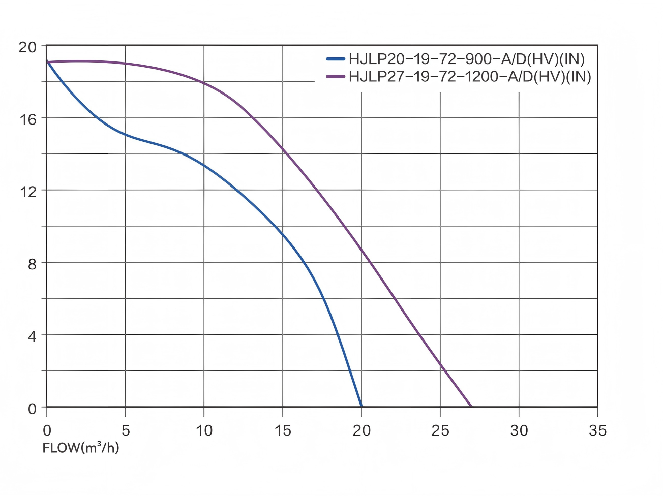HJLP27-19-72-1200-A/D(HV) | 85V-280V(/) | 100V-350V | 1200W | 27m³/h | 19m | 3"x3" | 2m | <450V | <430V |