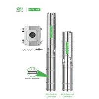 4"DC brushless solar pump with S/S impeller stainless impeller, MPPT controller, brushless motor. High-resistance material.